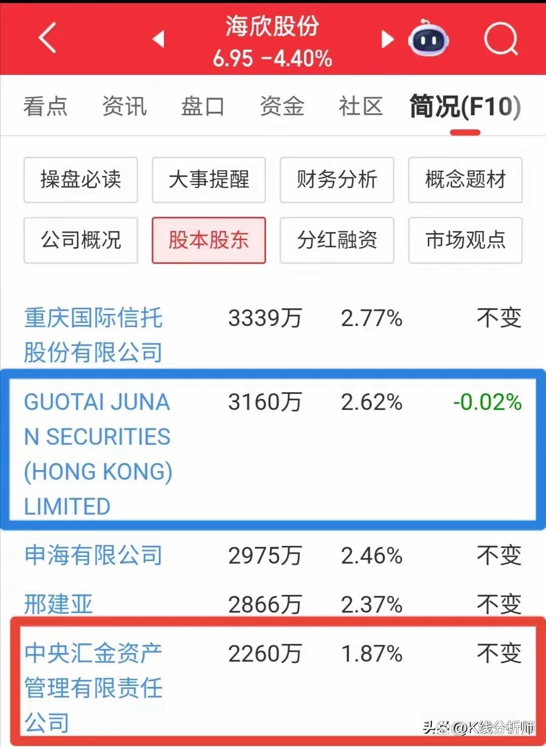 海欣股份(中央汇金重仓2260万股)公司的新药沙库巴曲阿利沙坦钙片获批上市,为国产原研首款,全球第2款获批的ARNI类药物获得AGT-siRNA药物GW906独家许可权益,进一步丰富慢性病领域创新产品管线。国泰君安同时也重创了3160万股。