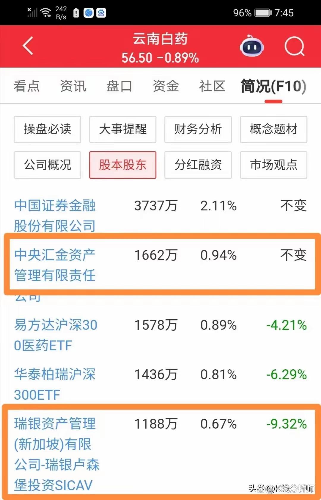 云南白药(中央汇金重仓1662万股)公司是我国知名中成药生产企业之一,同时也是云南大型工伤医药企业之一,是我国中成药50强之一。公司每股净资产22.85元每股收益1.084元2025一季度年归母净利润同比增长13.67%。外资瑞银也重创了1188万股。