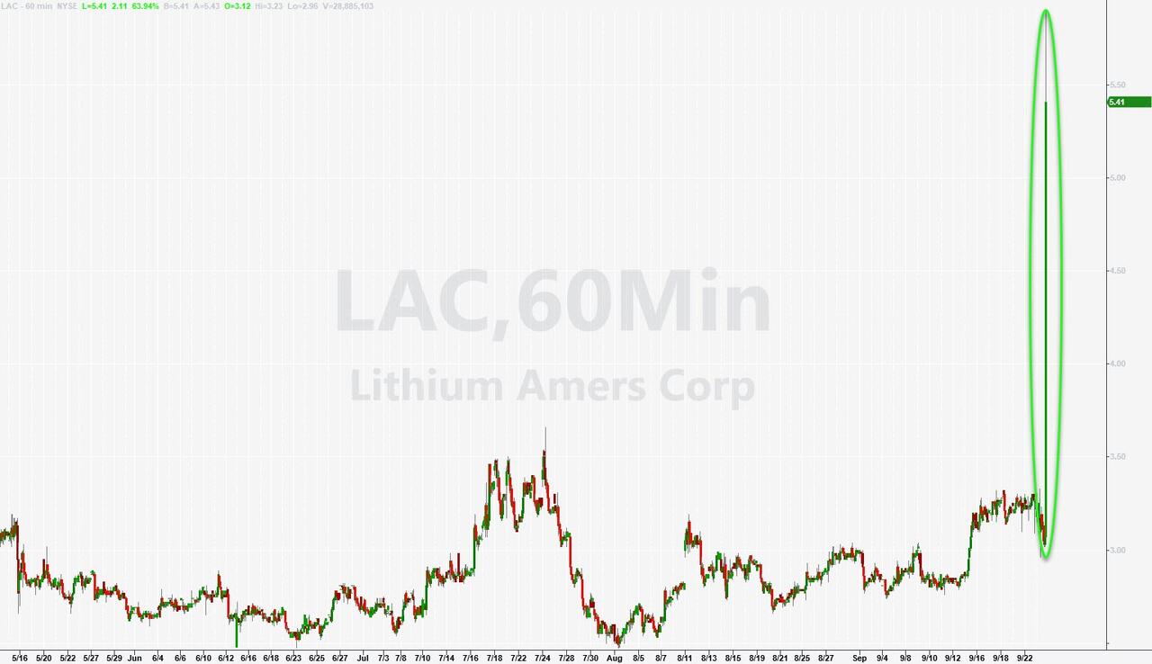市值约7.5亿美元的美洲锂业是多家开发美国锂项目的公司之一,其他从事该领域大型项目的公司还包括了ioneer、埃克森美孚、Standard Lithium等。在上述消息公布后,美洲锂业公司股价在盘后交易中一度飙升近80%,从每股3美元左右涨至5.54美元。