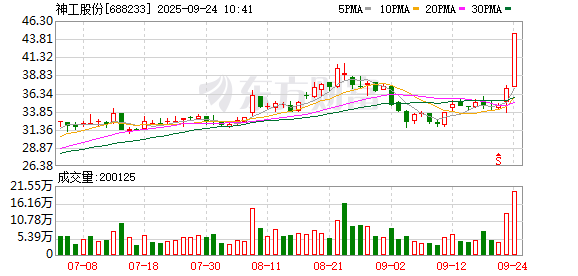 9月24日盘中科创板股神工股份涨停,截至09:42,股价报44.51元,成交4.71亿元,换手率6.69%,振幅19.71%。
